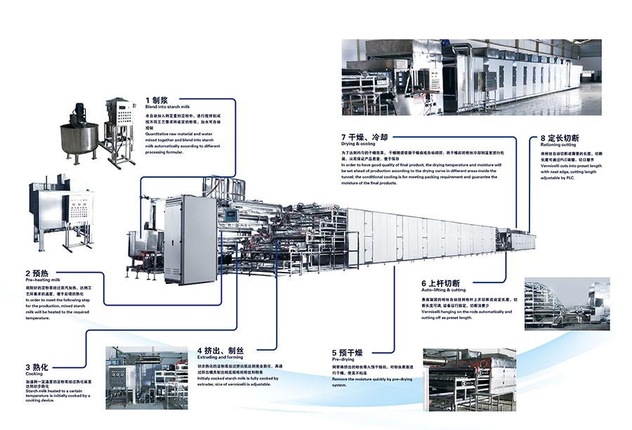 2、本生產(chǎn)線無(wú)需要水洗環(huán)節(jié),因此大大地節(jié)省水資源,且無(wú)須建立污水處理廠, 解決了粉絲生產(chǎn)中的環(huán)保問(wèn)題;