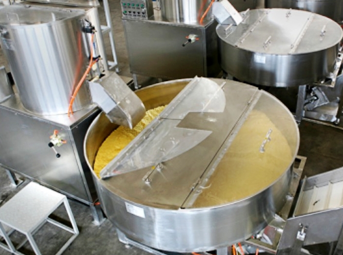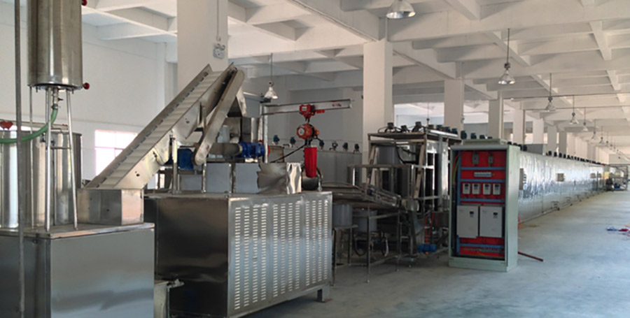 本生產(chǎn)線采用擠壓非膨化技術,通過高壓高溫使雜糧淀粉糊化并形成條狀;本設備適用于多種雜糧谷物,針對不同糧食的特性,只需調(diào)整相關的PLC參數(shù),即可實現(xiàn)不同原料雜糧面條的生產(chǎn)。
