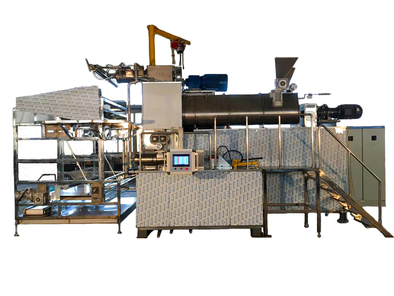 通過(guò)螺桿輸送使面團(tuán)均勻、穩(wěn)定的落入到擠出工序,輸送速度可調(diào);