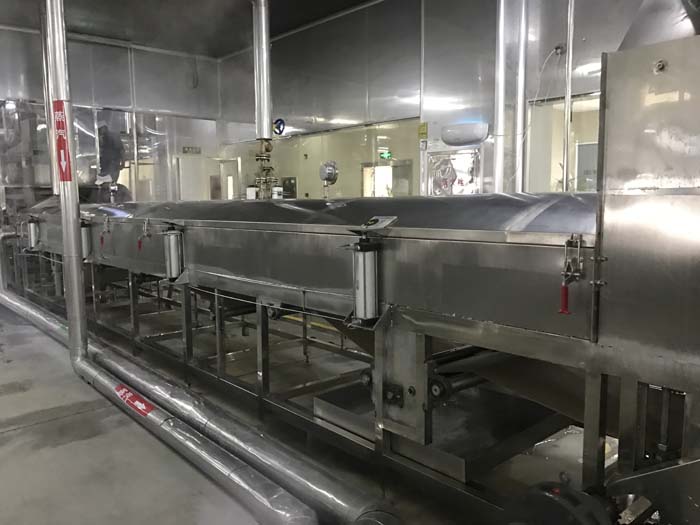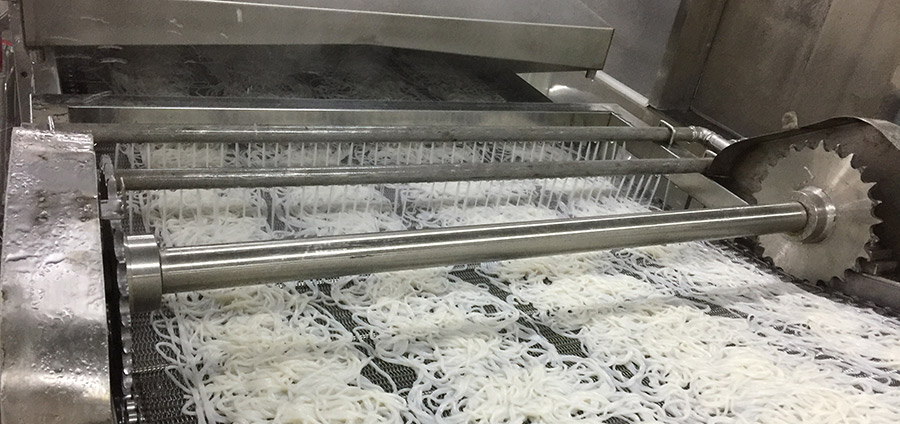 為了延長(zhǎng)鮮米粉的保質(zhì)期,包裝好的米粉需要進(jìn)行巴氏滅菌。 通過(guò)蒸汽完成最后的殺菌后進(jìn)入到冷卻。