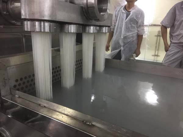 冷卻后的米粉被定長(zhǎng)切斷。粉被切成定長(zhǎng)。