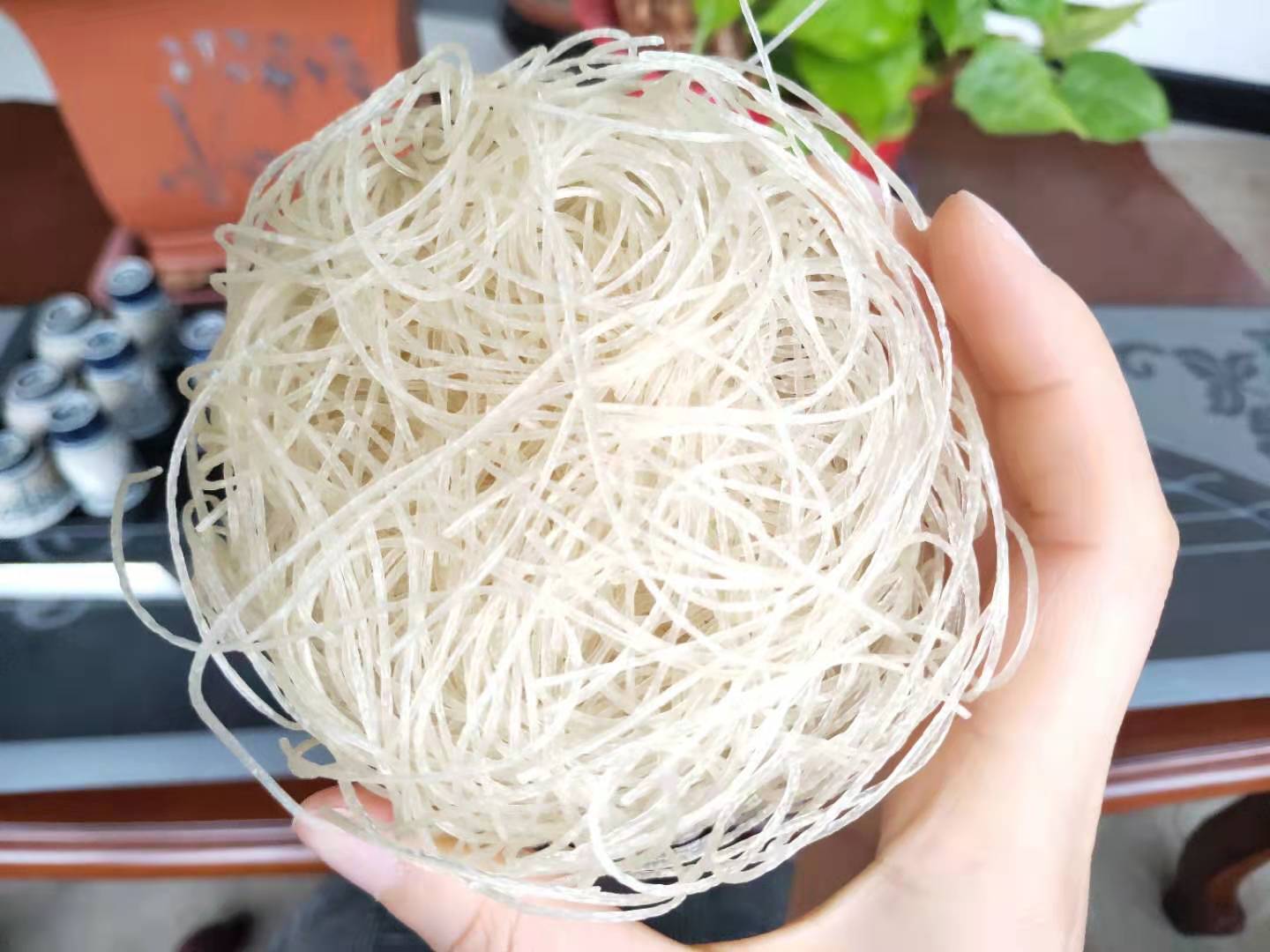 4、靈活的食用方法:本工藝生產(chǎn)的產(chǎn)品可煮,可泡,開水沖泡3-4分鐘即可食用。產(chǎn)品口感好,無混湯、斷條、粘連現(xiàn)象。